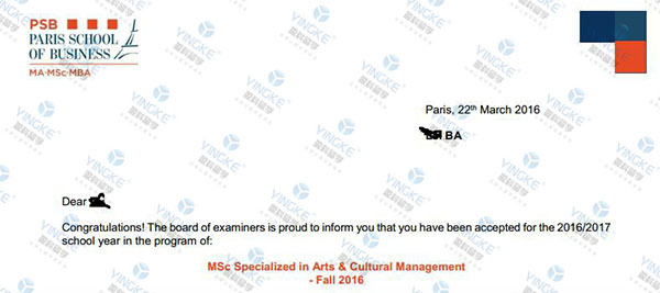錄取專業(yè):Arts & Cultural Management(碩士)