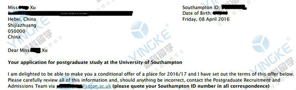 成功申請院校:南安普頓大學(xué)