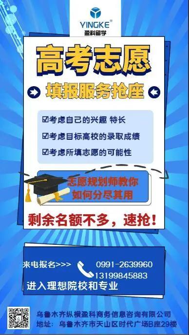 更多留學(xué)、高考相關(guān)資訊,請關(guān)注微信公眾號“新疆盈科留學(xué)”或加入微信群“盈科高考志愿填報(bào)公益講座沙龍”。
