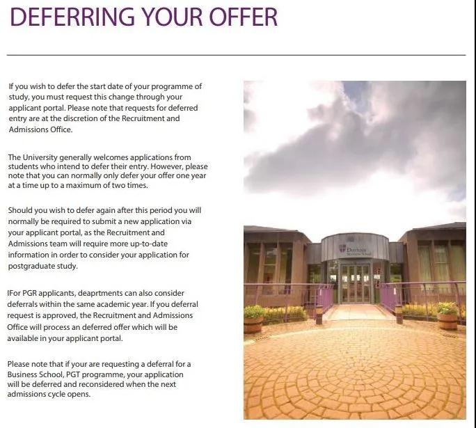 杜倫大學(xué)的延期都是case by case的,以各自學(xué)院審核為準(zhǔn),最多允許提交2次且延期一年,case by case最終結(jié)果以各自學(xué)院審核為準(zhǔn),在applicant portal里提交。