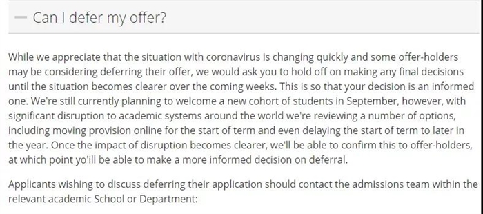 后續(xù)會不會有更多英國大學(xué)不接受延期政策我們還不得而知。也有很多學(xué)校表示接受延期,但是不同專業(yè)會有所差別。
