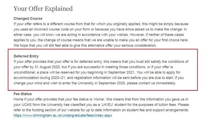 伯明翰大學(xué)大部分專業(yè)都可以延期,不過也有學(xué)生反饋商院的專業(yè)有些不能延期,具體可以郵件聯(lián)系學(xué)校。