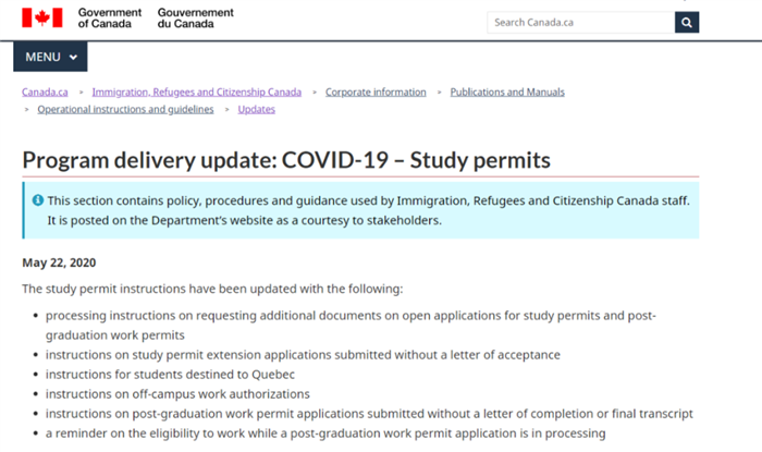 為此,加拿大移民部發(fā)布了一些靈活的調整。加拿大移民部在5月22日,更新了有關學簽和畢業(yè)工簽的臨時變更。