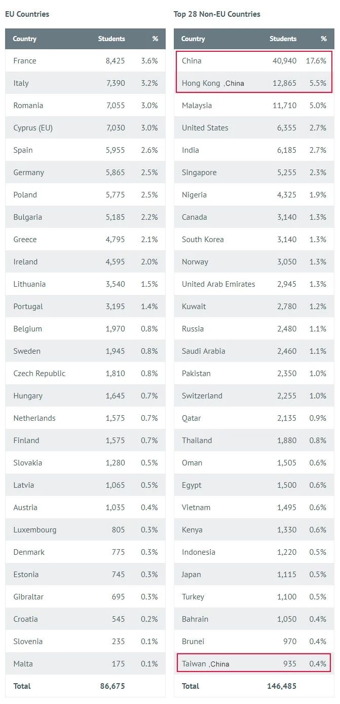 沒(méi)錯(cuò),中國(guó)仍為英國(guó)留學(xué)最大的生源國(guó),占比23.5%(含香港和臺(tái)灣),第一位置無(wú)法撼動(dòng)。隨著2019年英國(guó)頻頻釋放留學(xué)利好政策,預(yù)計(jì)2020年,英國(guó)留學(xué)熱度會(huì)持續(xù)升溫。計(jì)劃赴英留學(xué)的同學(xué)們,可要提前準(zhǔn)備哦。